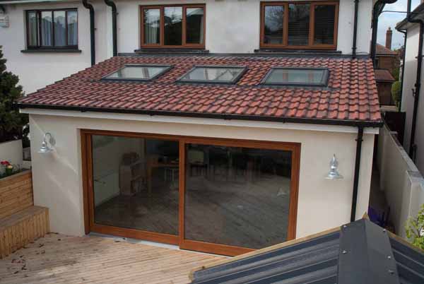 Extend your current living space with an extension. Spacious and modern glass panel sliding doors.